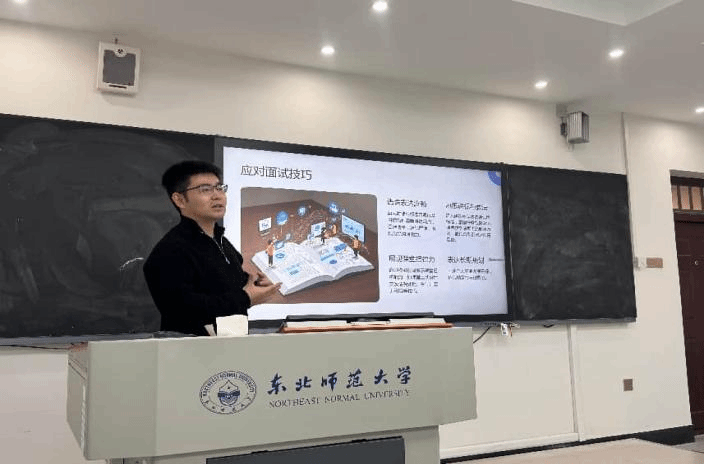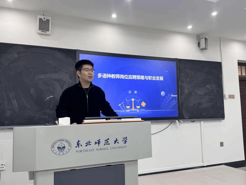 在分享会上,迟超老师围绕“站上讲台、站稳讲台、站好讲台”的职业发展主线,为同学们带来了一场实用的分享。他首先分析了中学俄语、日语、德语教师的就业形势,介绍了岗位来源、特点及招聘信息中的隐含要点,并从岗位识别、材料准备、面试技巧等方面给出应聘建议,帮助同学们精准求职。随后,迟老师结合优秀教师的核心素养,与同学们互动交流,分享了教师从新手期到成熟期的成长路径——包括积极适应、提升教学、形成风格、参与教研,并通过创新教学、扎实科研实现持续精进。他鼓励同学们珍惜在校时光,精进语言能力与教学技能,积极参与实习和竞赛,夯实专业基础。同时保持“向外看、向前走”的心态,勇敢突破舒适区,在教育及其他领域发光发热。最后,迟老师深情回忆母校培养,表示东师外院不仅是学业起点,更是教师理想的摇篮。他铭记学院“用生命影响生命”的嘱托,认为学院赋予自己的不仅是专业知识,更是一份教育者的使命与情怀。