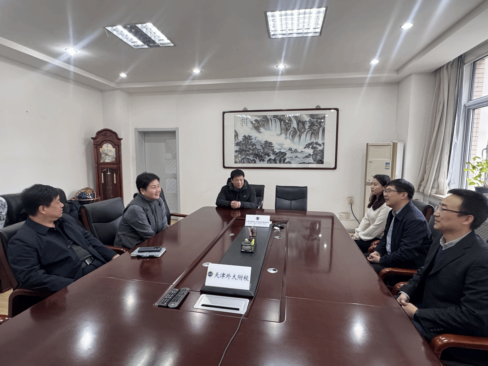 在天津外大附校访问期间,该校党委书记魏华、校长李晓辉与工作组举行座谈,对东师校友教师在校的工作表现给予了高度评价,充分肯定了他们的专业能力与职业素养,并欢迎更多东师优秀毕业生加入该校教师队伍。仇云龙副书记代表工作组对天津外大附校的热情接待和悉心组织表示感谢,并指出学院将持续引导学生以“四有”好老师为标准成长成才,支持与鼓励优秀毕业生前往天津外大附校等优质平台任教,延续两校间的良好合作与人才输送传统。在石家庄外国语学校,工作组与该校任职的东师校友代表就外语人才培养、招生及就业等问题进行了深入交流。德语系副主任谷薇、俄语系副主任沈倬丞和辅导员许天怡参加了上述活动。