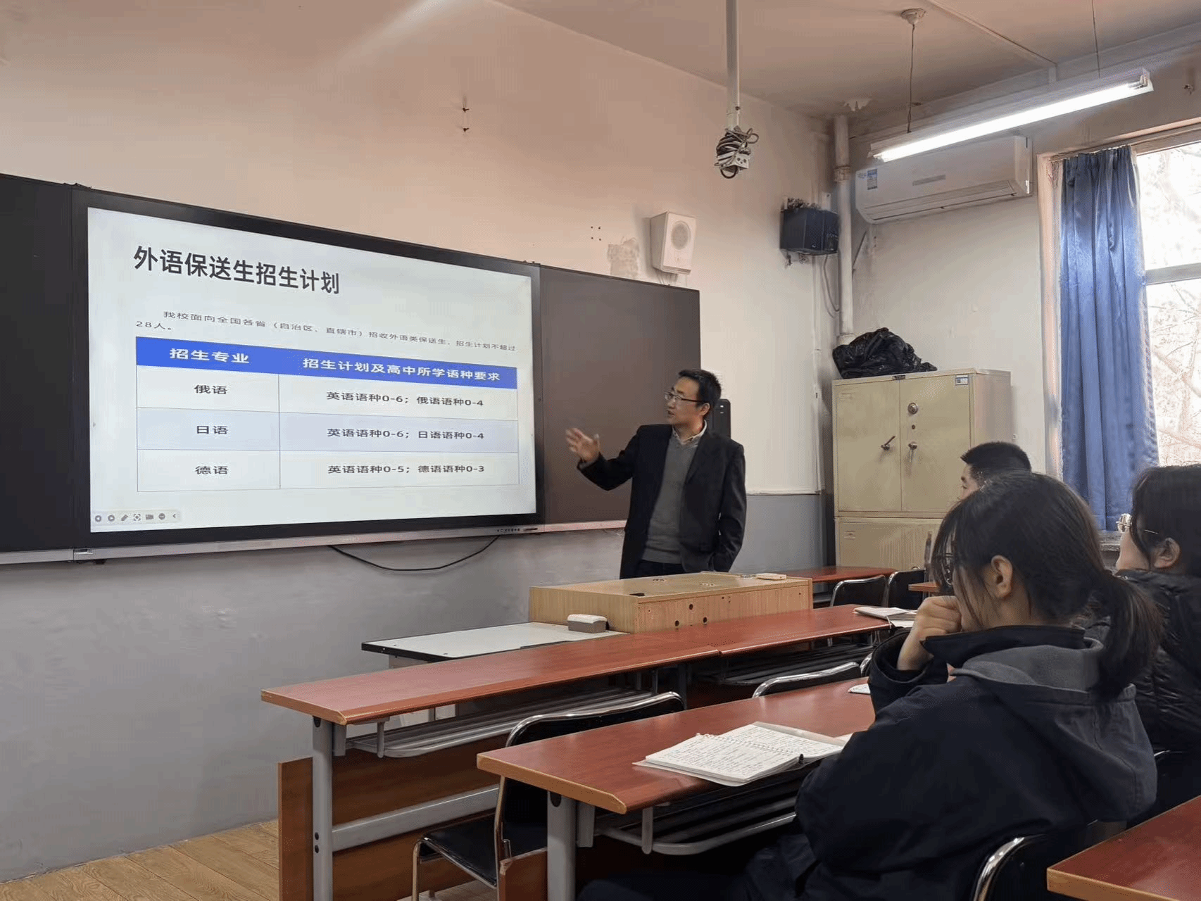 为深入推进学院“招—培—就”一体化建设,2025年12月31日、2026年1月6日至7日,外国语学院副院长金万锋、党委副书记仇云龙一行先后访问长春外国语学校、天津外国语大学附属外国语学校(以下简称“天津外大附校”)及石家庄外国语学校,开展小语种保送生招生政策宣讲,并积极拓展毕业生就业渠道。