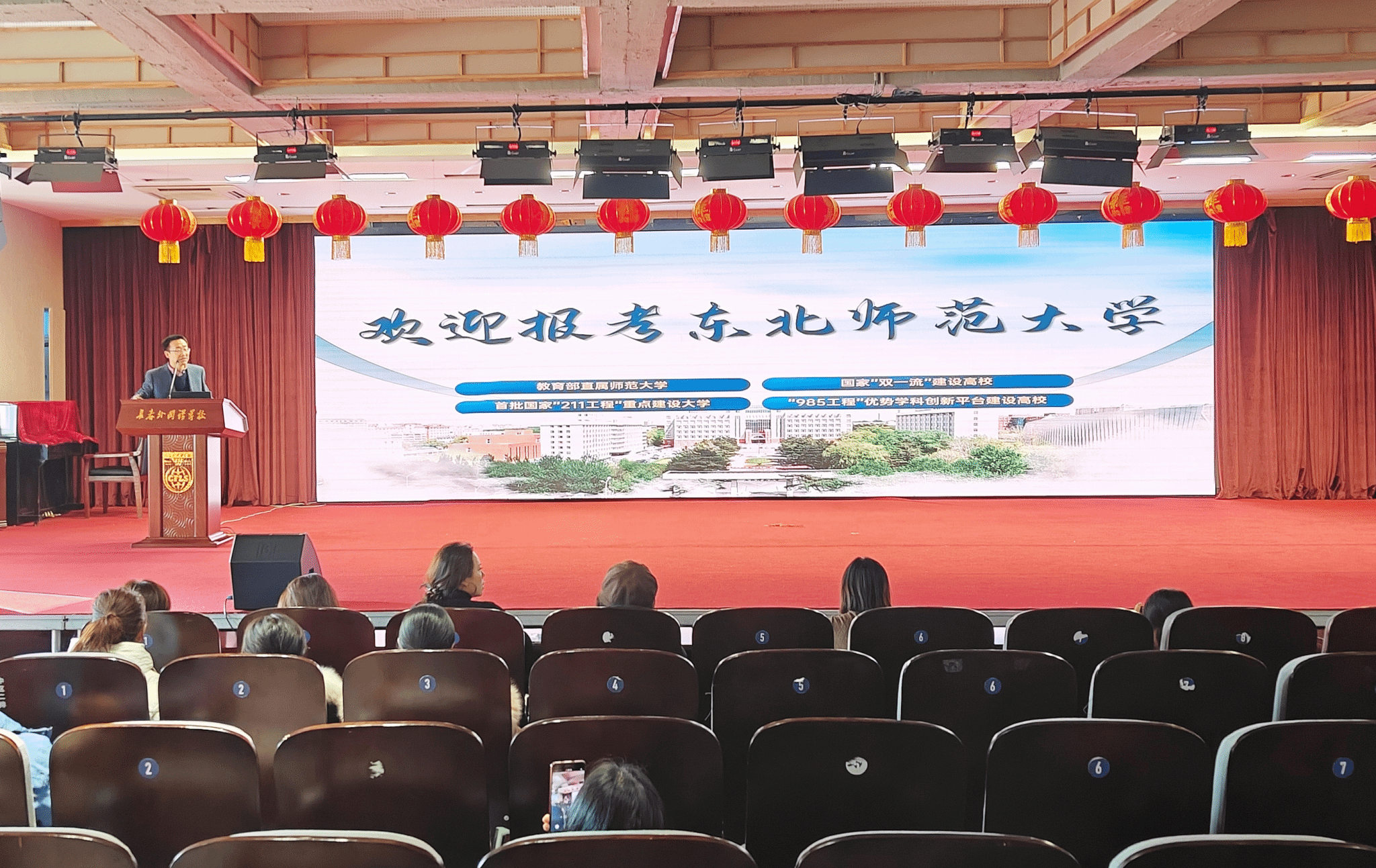 在长春外国语学校、天津外大附校与石家庄外国语学校举行的专题宣讲会上,金万锋副院长以“走进东师”“学在东师”“乐享东师”为主题,向与会师生及家长系统介绍了我校及外国语学院的历史传承、学科优势、发展前景与人才培养特色,生动展现了学院深厚的办学底蕴与充满活力的校园生活。仇云龙副书记重点分析了我校毕业生的就业形势与发展前景,结合往届优秀毕业生的实际案例,增强了学子们报考我校的信心与期待。宣讲结束后,工作组成员与现场家长、学生围绕报考政策、课程体系、学业规划等话题进行了深入对话,就热点问题进行了解答。