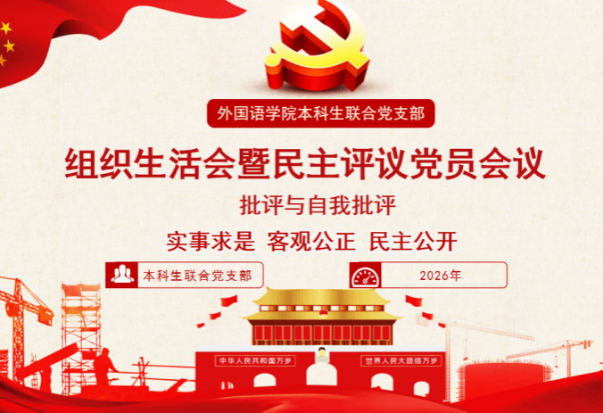 2026年3月26日下午,外国语学院本部本科生联合党支部按照学校要求,及时召开组织生活会暨民主评议党员会议。会议由支部书记李星喆主持,支部22名党员全部参加。