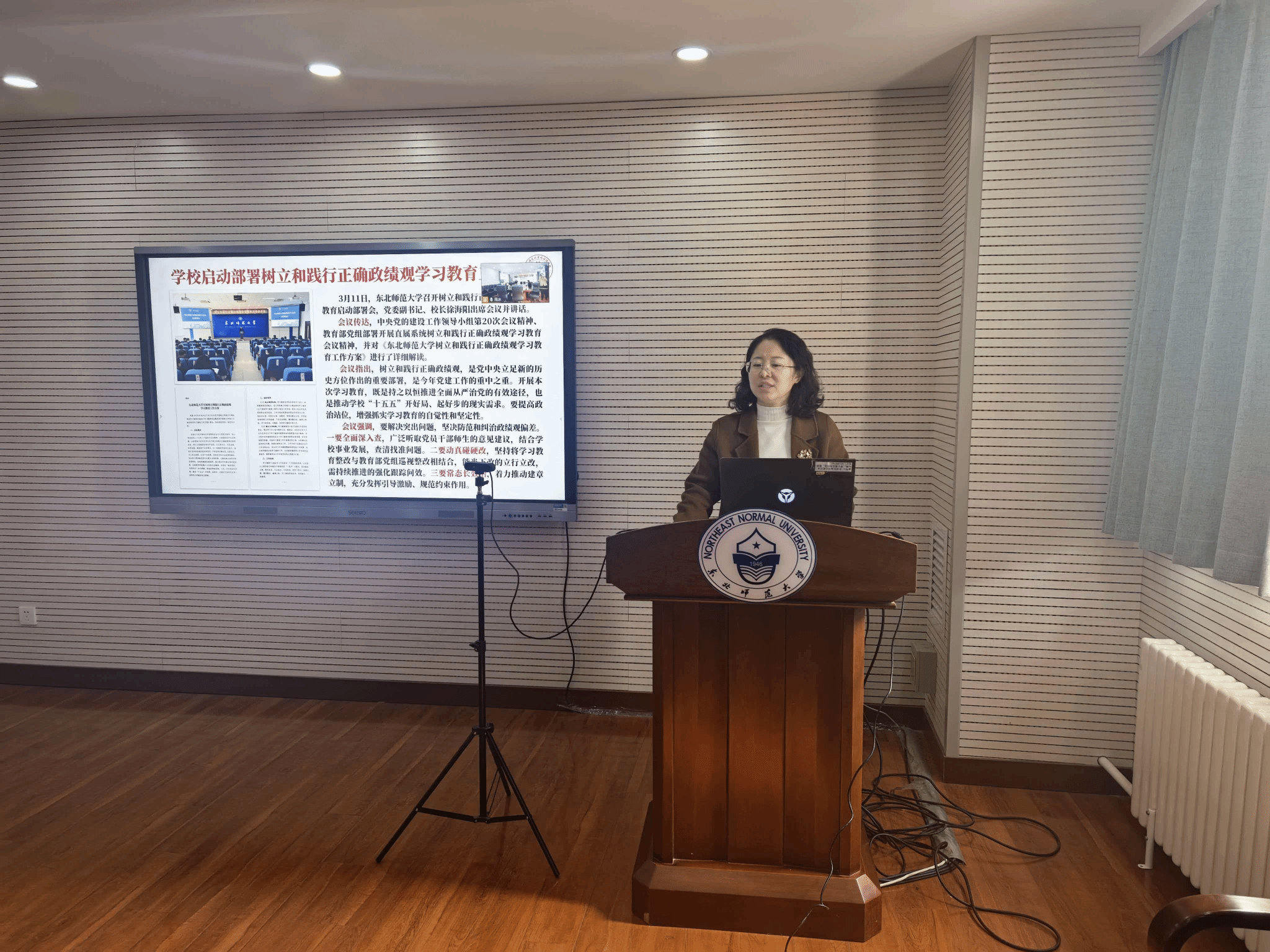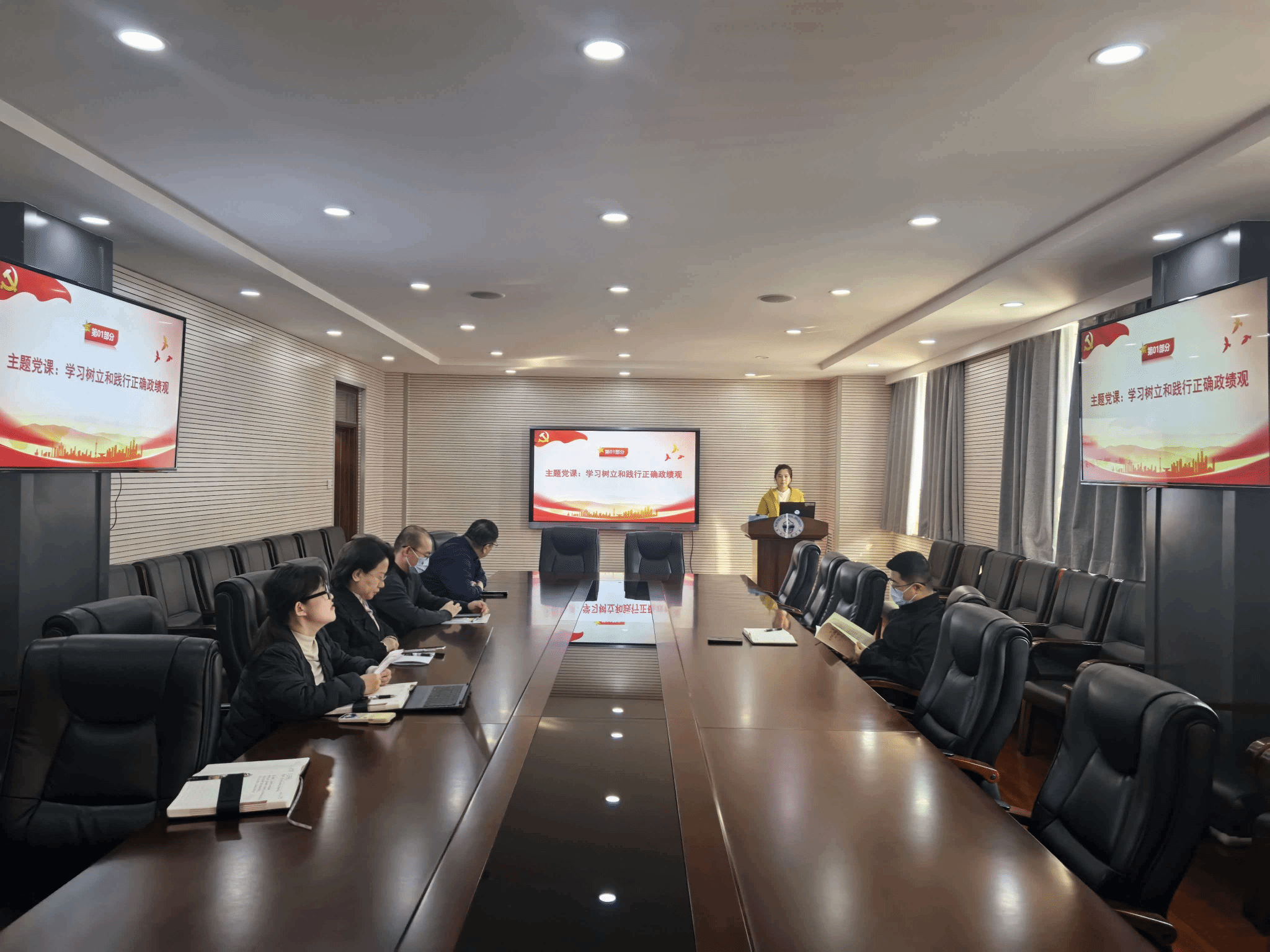 3月23日,丁少慧副院长在学院本部427会议室为行政党支部全体党员部署学院政绩观学习教育相关工作,强调了树立和践行正确政绩观是当前支部党建工作的重要任务,关乎行政教辅服务质效提升,关乎学院高质量发展大局。部署结束后,党支部书记周冰为全体党员讲授“树立和践行正确政绩观”主题党课。党课围绕正确政绩观学习的核心内涵展开,深入解读了树立和践行正确政绩观的重要意义与实践要求,重点引导党员深刻思考并答好“为谁树政绩、树什么样的政绩、靠什么树政绩”三大核心问题,帮助全体党员进一步厘清了思想认识、强化了责任担当。