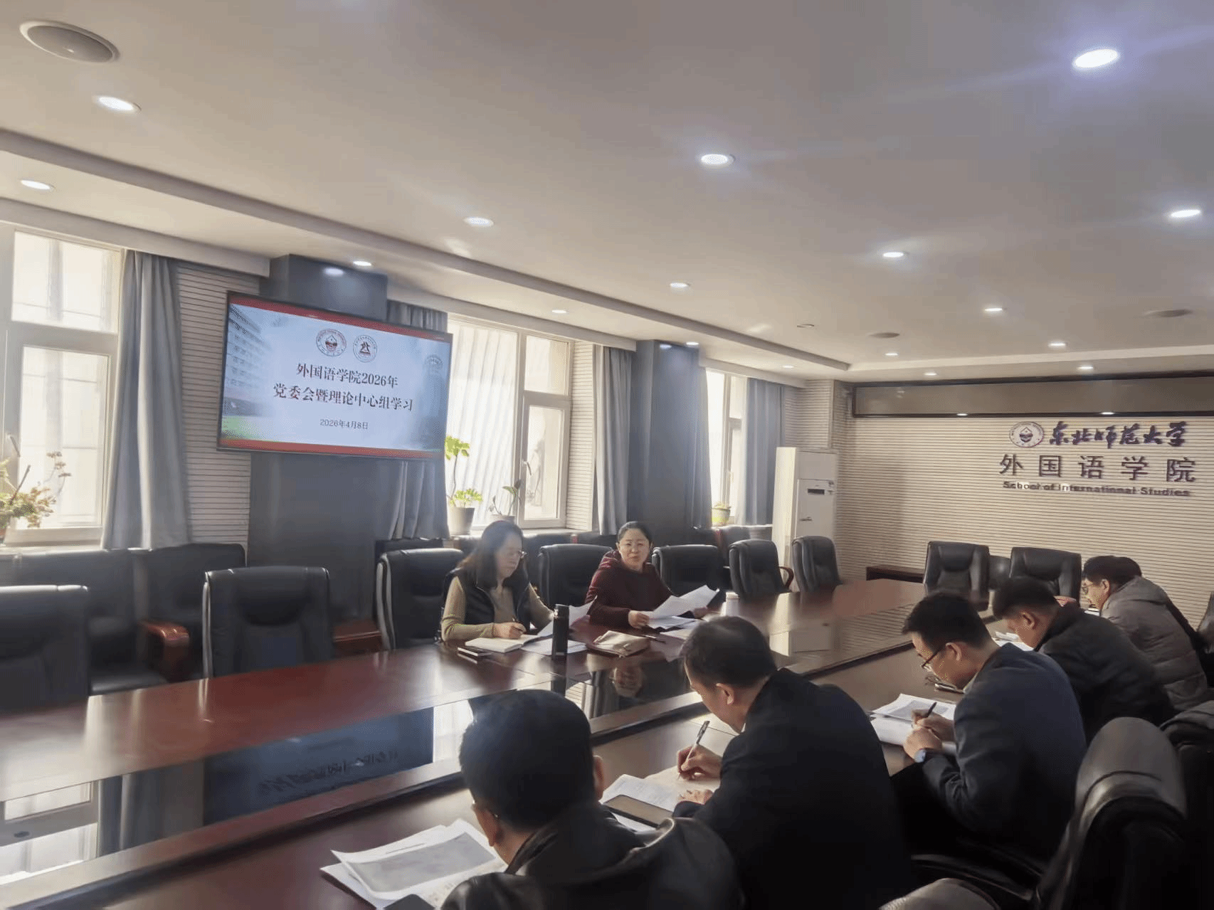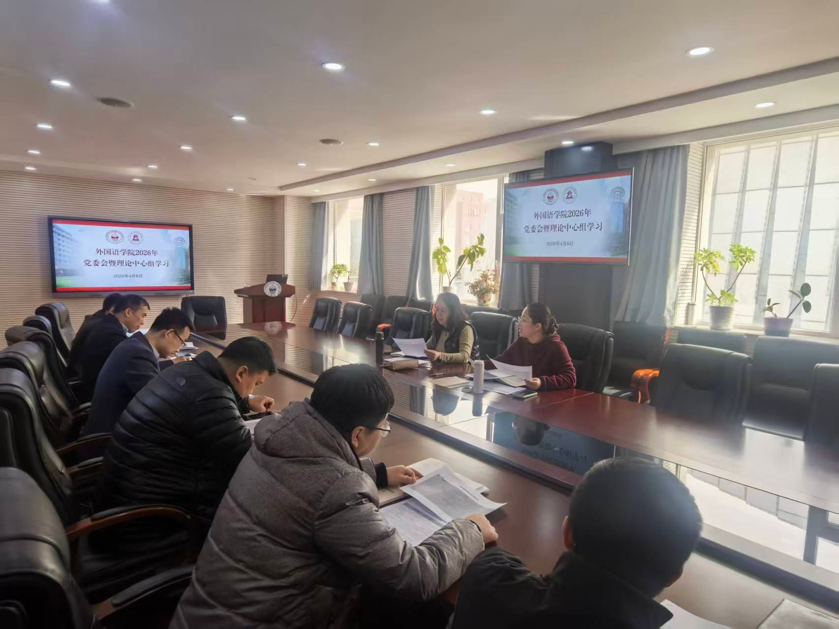 4月8日,外国语学院在427会议室召开树立和践行正确政绩观学习教育读书班理论中心组学习暨第八次党政联席会。
