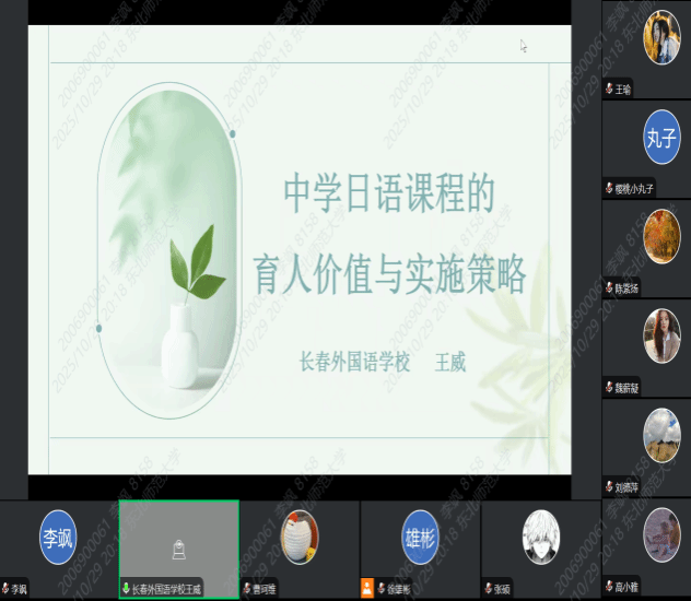 10月29日,系列讲座第二讲由长春外国语学校初三年级主任、综合语种教研室副主任、日语学科负责人王威老师主讲,主题为 “中学日语课程的育人价值与实施策略”。拥有北京师范大学硕士学历的王威老师,不仅是吉林省骨干教师、吉林省日语核心教研组成员,还担任人民教育出版社 2024 年全国秋季义务教育教材审读专家、全国高中教材培训专家,在中学日语课程设计与育人实践领域成果丰硕。讲座中,王威老师首先围绕 “中学日语课程的育人价值” 展开深度剖析,结合日语学科特点与中学生认知规律,阐明了日语课程在培养学生语言能力、传递中日文化精髓、塑造跨文化思维、培育家国情怀与国际视野等方面的独特作用,让师生深刻理解了学科育人的核心内涵与重要意义。随后,针对育人价值的落地路径,他聚焦“实施策略”这一关键环节,结合长春外国语学校日语教学实践案例,从“教材内容的育人元素挖掘”“课堂教学中的育人场景创设”“课外实践活动的育人功能延伸”“教学评价中的育人导向融入”等维度,详细分享了如何将育人目标贯穿于教学全过程。同时,作为全国日语云教研活动主讲专家与北京师范大学行业指导教师,他还结合当下中学日语教学的热点难点问题,与在场师生探讨了育人策略与教学效率的平衡方法,为学生未来投身中学日语教学、实现“教书”与“育人”协同发展提供了切实可行的实践参考。