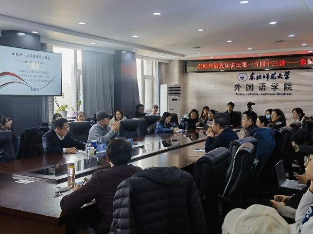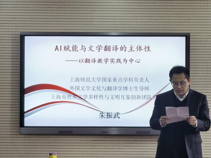 11月28日下午,我院特邀上海师范大学外国语学院朱振武教授,于外国语学院本部427会议室开展题为“AI赋能与文学翻译的主体性——以翻译教学实践为中心”的学术讲座,聚焦AI时代下的文学翻译,系统剖析了人工智能在文学翻译中存在的问题及缺陷,为翻译学科的建设提供了宝贵见解。本次讲座由副院长徐彬教授主持,我院师生数十余名到场聆听,现场学术氛围浓厚,互动交流热烈。