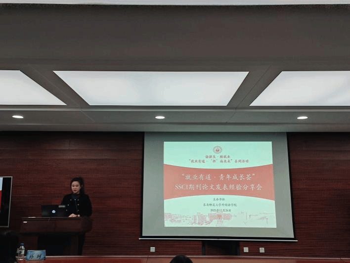 为深入学习贯彻党的二十届四中全会精神,扎实推进教育强国建设,同时加强我院学风建设,浓厚学术研究氛围,进一步激发研究生的科研热情,赋能个体学术成长,11月26日下午,我院研究生会于外语楼713报告厅成功举办就业有“道”·青年成长荟系列活动之“SSCI期刊论文发表经验分享会”。本次活动由研究生会职拓部曲芊芊主持,研究生会指导教师刘晨出席本次活动,特邀我院2023级外语教育专业硕士研究生孙珂作为分享嘉宾,本研学生踊跃参与,现场氛围积极热烈。