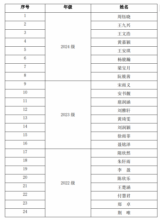 经学院宣讲、学生申报、学院本科生奖励评审小组评审,根据《教育部 财政部关于印发〈本专科生国家奖学金评审办法〉的通知》(教财函[2019]105号)《财政部 教育部 人力资源 社会保障部 退役军人部 中央军委国防动员部关于印发<学生资助资金管理办法>的通知》(财教[2021]310号)《财政部 教育部 人力资源社会保障 部关于调整高等教育阶段和高中阶段国家奖助学金政策的通知》(财教[2024]181号)和《东北师范大学本科生国家奖学金评审办法》(东师校发字〔2020〕126号)相关规定,现将外国语学院获得本年度本科生国家奖学金的情况公示如下: